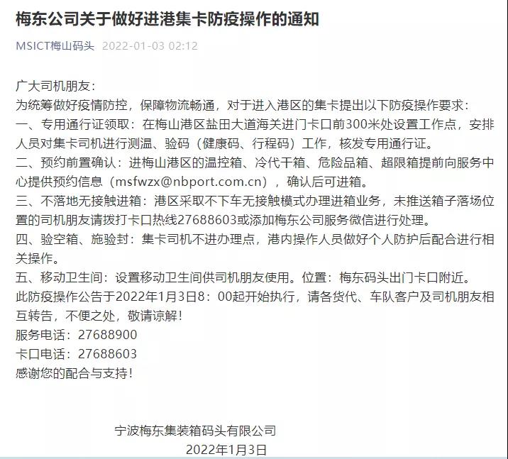 舟山港、MSICT梅山码头及NBCT北一集司防疫通知:(滑动查看)